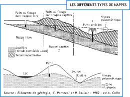Certaines formations géologiques sont suffisamment poreuses ou fissurées pour contenir de l'eau. On parle alors de formations aquifères (éthymologiquement « roche qui contient de l'eau »). Selon la nature géologique des terrains, on peut distinguer différents types aquifères :